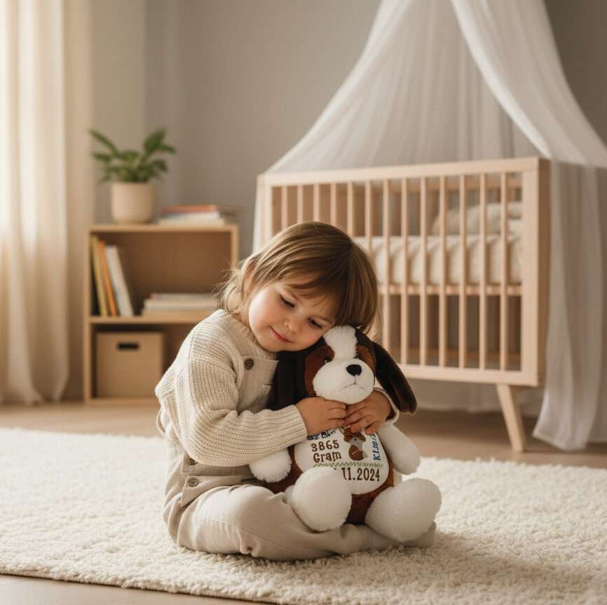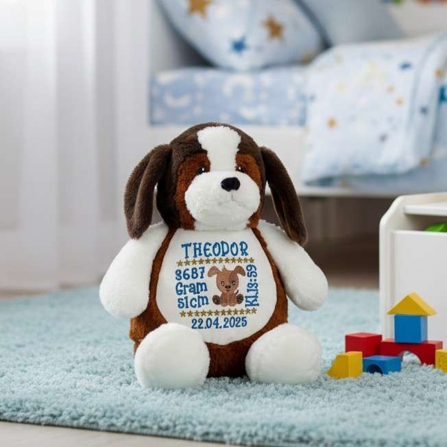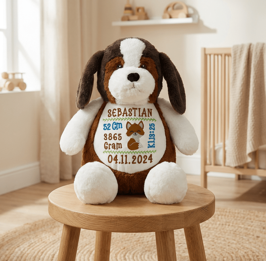 Leter du etter en hund bamse med navn som både er personlig, trygg og nydelig? Møt Maple, en myk og koselig beagle-bamse som kan broderes med barnets navn og fødselsdata – helt etter dine ønsker. Perfekt som personlig gave til nyfødt, dåpsgave eller bursdagsgave!