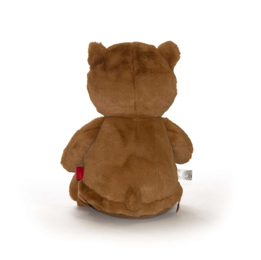 Brun bamse med navn og dato brodert på magen. Med øyne , nese og munn brodert på bamsen har den ingen løse deler , og er derfor trygg for alle aldre. Via en skjult glidelås bak kan innmaten tas ut så bamsen trygt kan vaskes i maskin. Pelsen til den brune bamsen er kort men myk, og bamsen er ca 30 cm høy fylt med kjærlighet og en super kompis. Bamsen er designet av Cubbies kreative team som gir alle kosedyrene ekstra karakter.